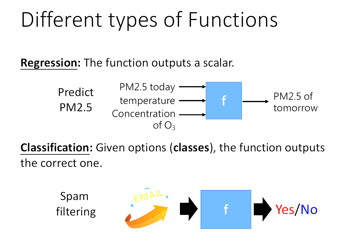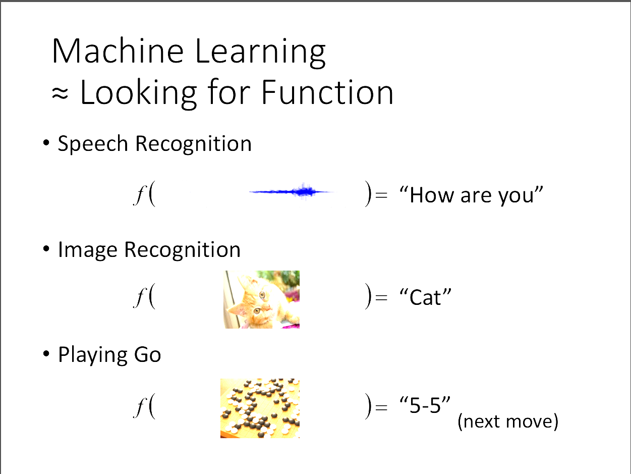 用非常白話文的方式就是去找尋一個function,使得每次輸入一個input就會輸出一段預測結果。