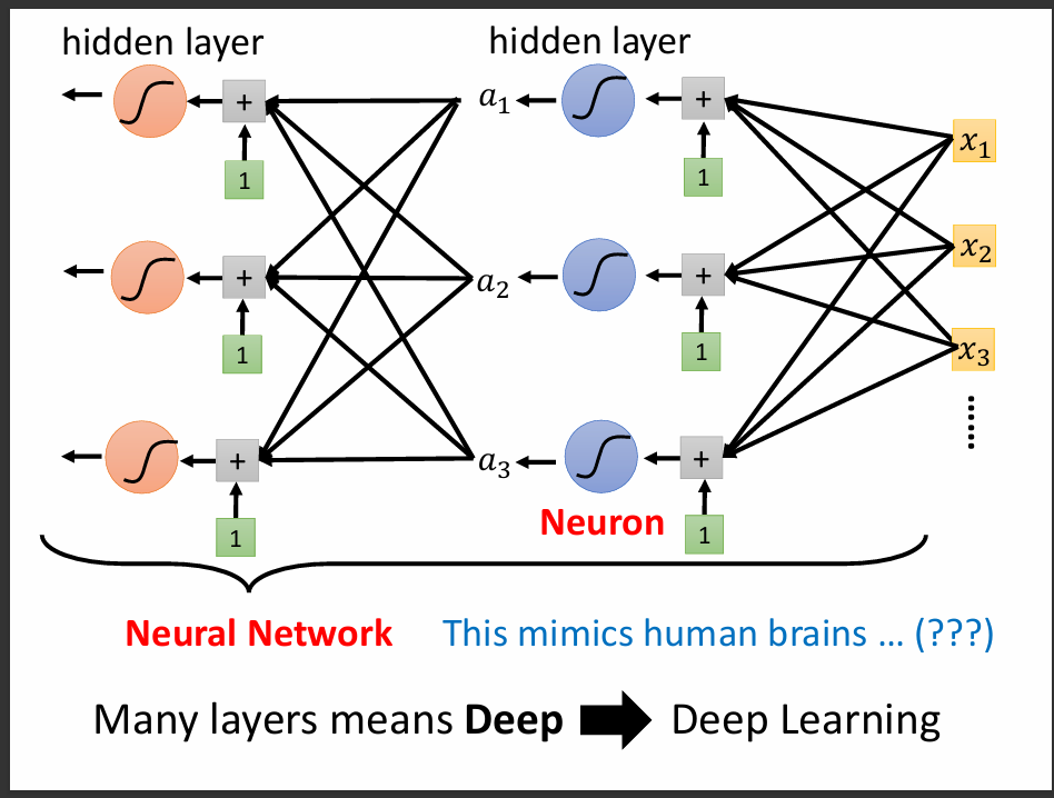 Neuron的意思是每一個activation function,Neural Network就是很多個Neuron組成的。