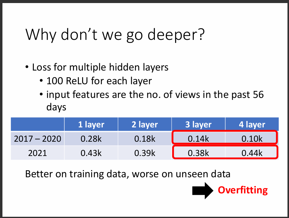 但為什麼有時候太Deep的模型不好,就是因為容易造成overfitting。Overfitting的意思就是在training data的表現很好,但是在testing data的表現上很差。 這是所有AI訓練人員所避免的事情。