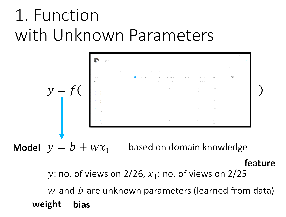 Loss Function就是帶有一堆參數的function,也稱為所謂的Model。