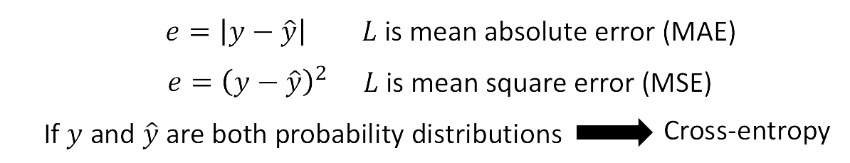 有很多評估loss的方法,先計算每個資料的error,可以用MAE、MSE等等,然後把這些error加總, 再做平均,即可得出這個模型對於這些資料所得到的Loss總和有多少。