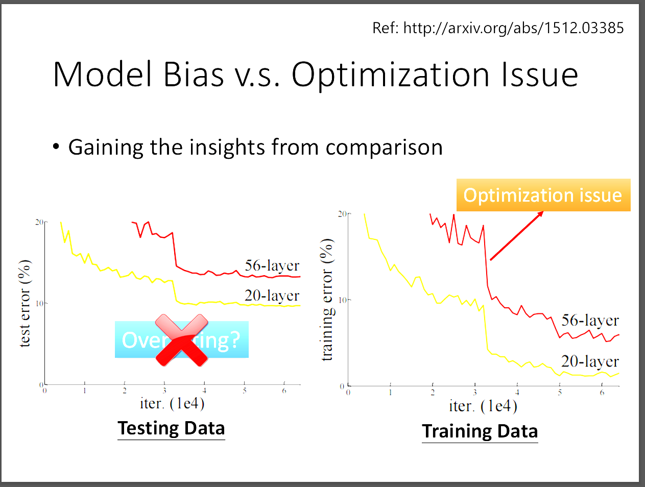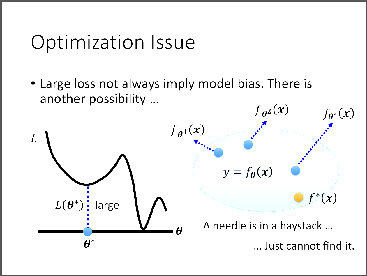 另一個可能的問題是Optimization Issue。也就是當我們用Gradient Descent去做Optimization時,