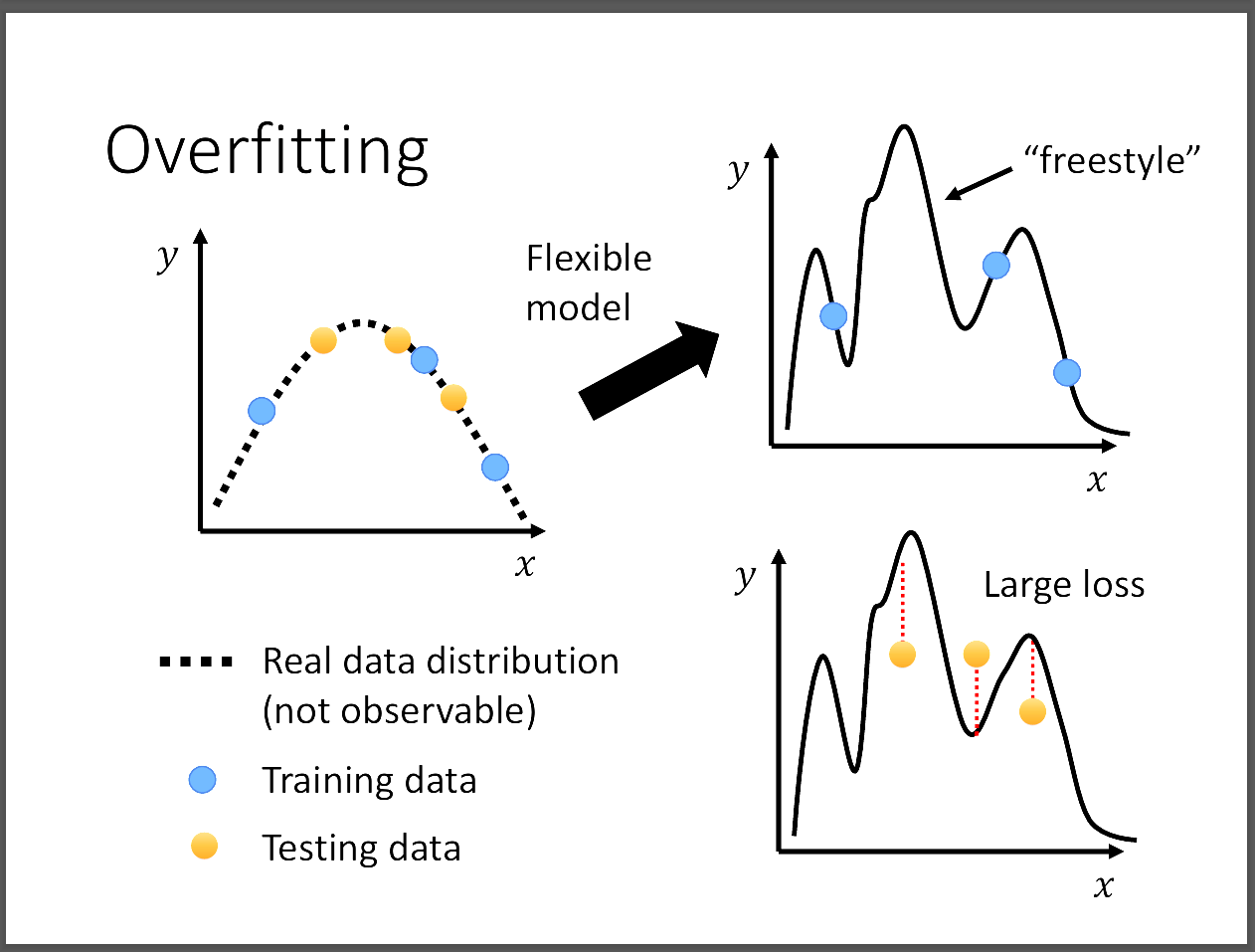 Overfitting就是只在training data上表現很好,但是在testing data上表現奇差。