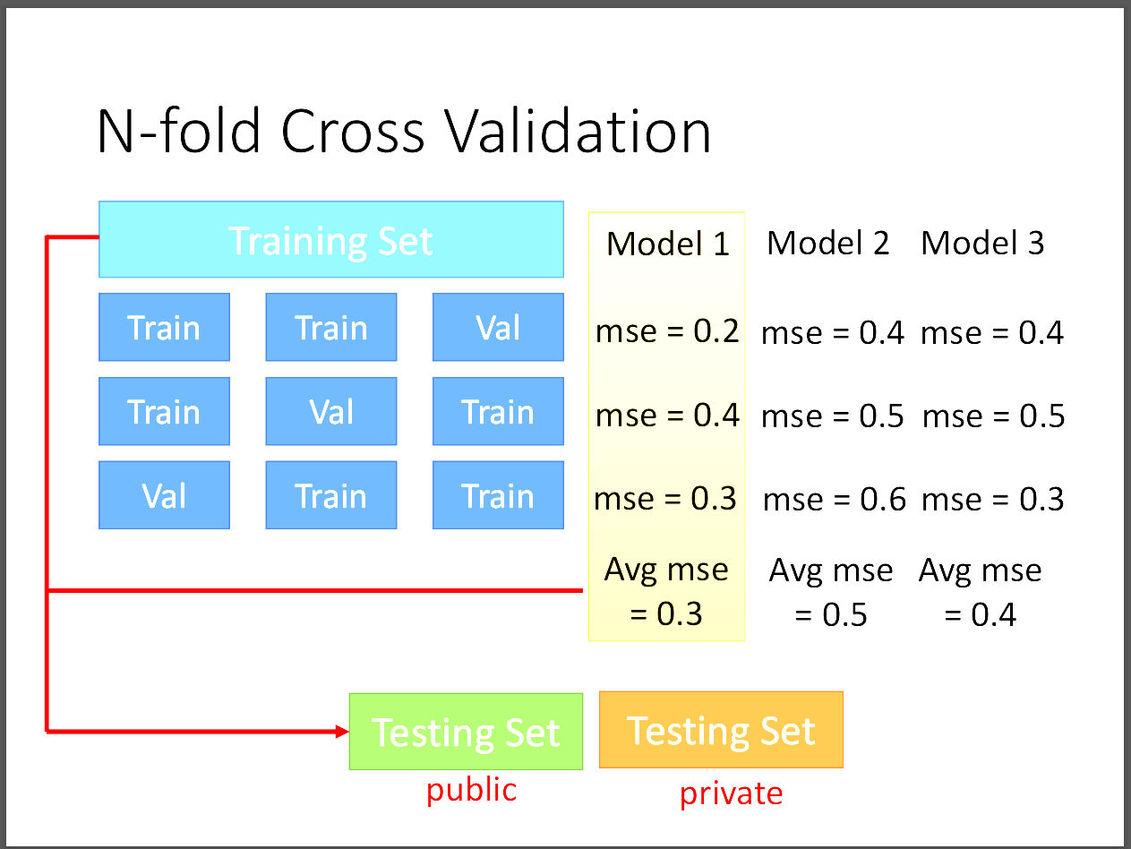 再把剩下的一等分當成validation set,這個驗證集可以當作testing data,