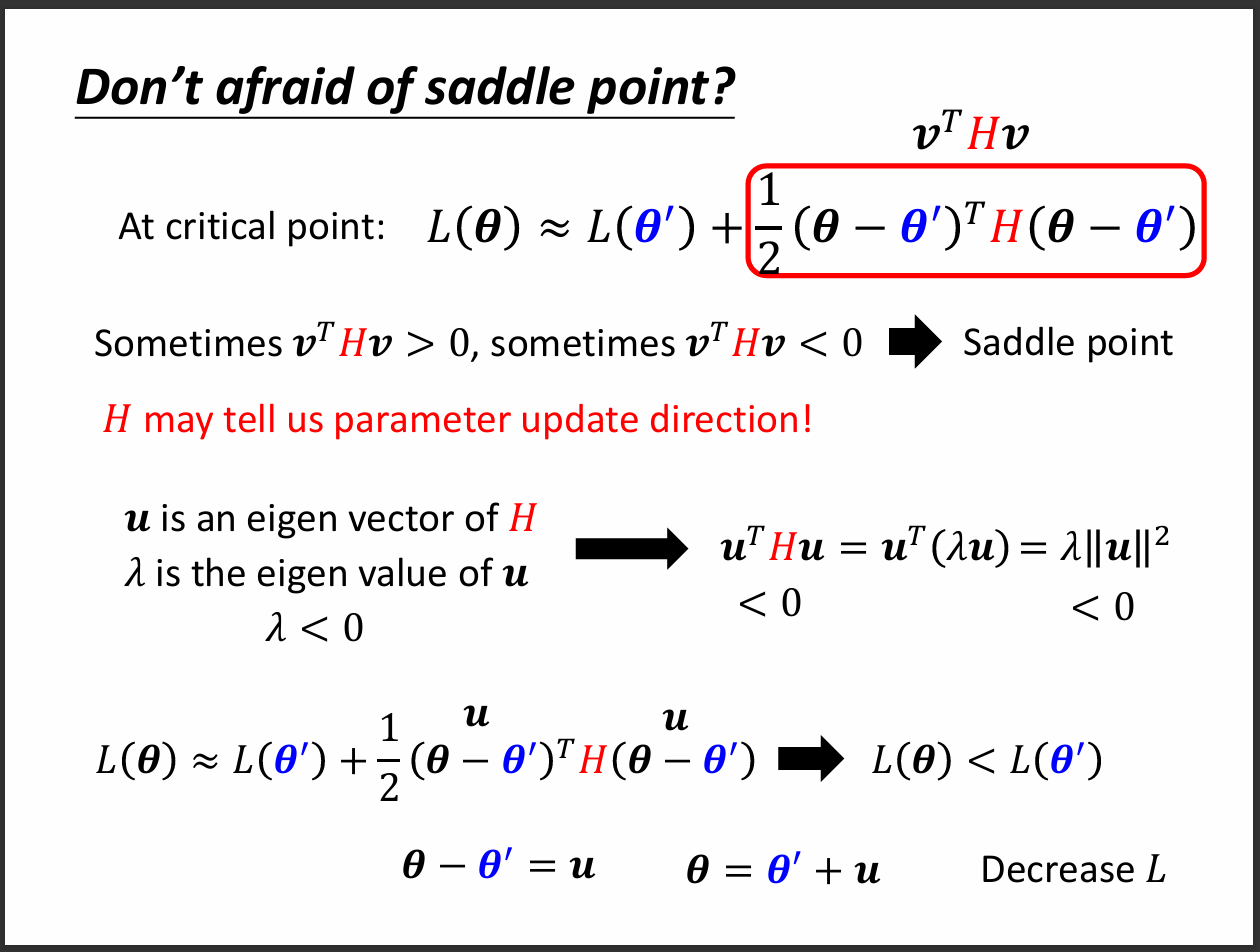 其中critical point有兩種,第一種是local minima,第二種則是saddle point。