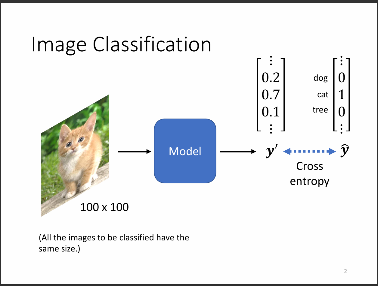 輸出則是這個圖片機器的預測機率,可以用one-hot vector表示每個類別。
