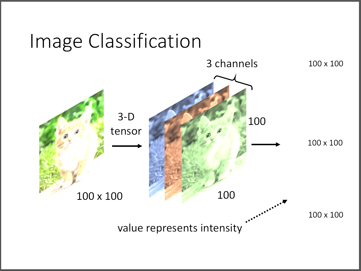 一張100*100的影像有3個channel,就是RGB那3個。小小補充,